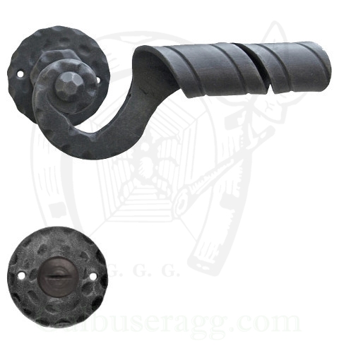 Klamka Absalon 26 z blokadą WC wykonana jest z ręcznie kutego żelaza i dostępna w trzynastu powłokach kolorystycznych. Klamka oryginalnie włoska wyprodukowana przez firmę Galbusera G.&G.