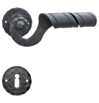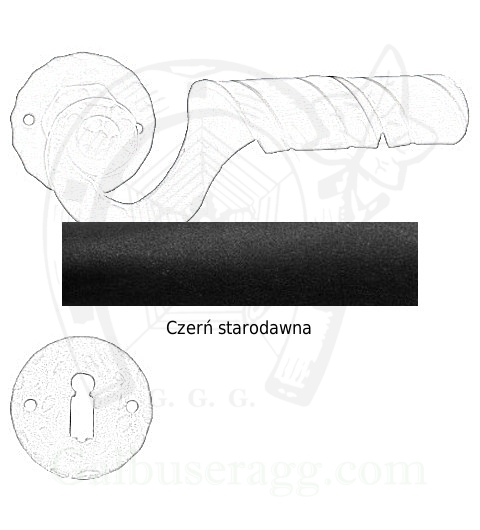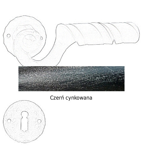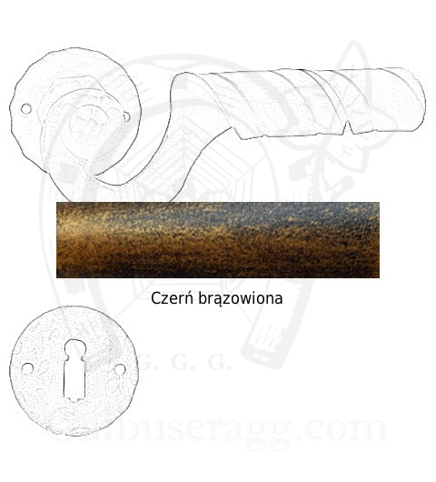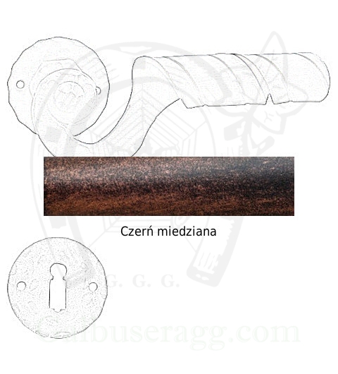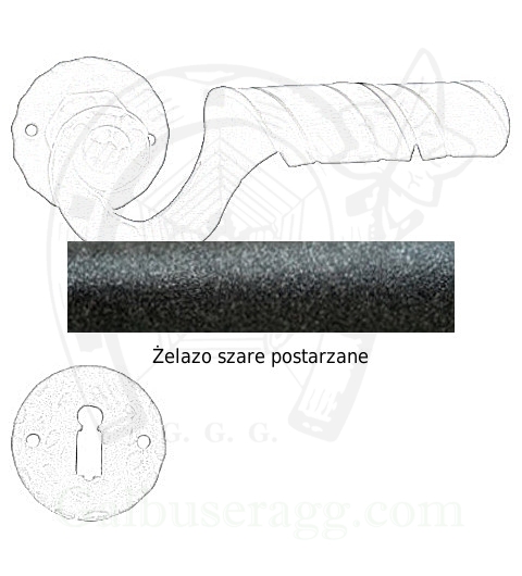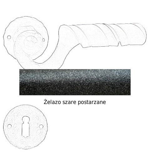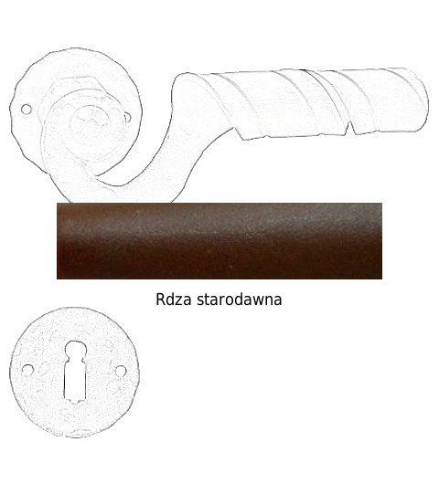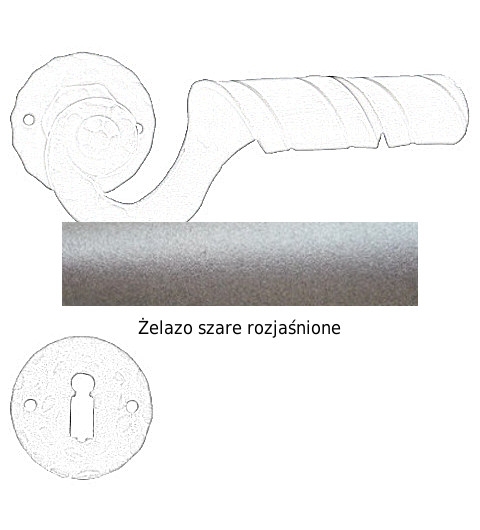 Klamka Absalon 26 z dolną rozetą na klucz zwykły wykonana jest z ręcznie kutego żelaza i dostępna w trzynastu powłokach kolorystycznych. Klamka oryginalnie włoska wyprodukowana przez firmę Galbusera G.&G.