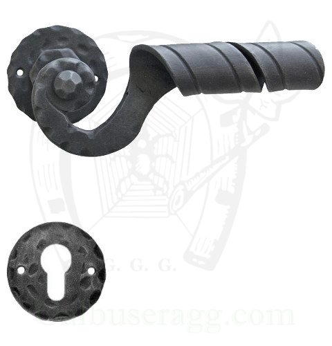 Klamka Absalon 26 z dolną rozetą na wkładkę patentową wykonana jest z ręcznie kutego żelaza i dostępna w trzynastu powłokach kolorystycznych. Klamka oryginalnie włoska wyprodukowana przez firmę Galbusera G.&G.
