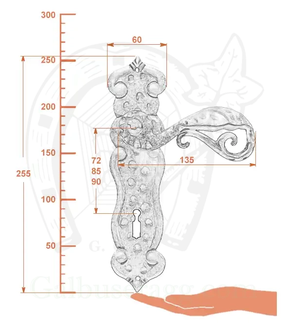 - Wymiary klamki dł. rękojeści 135 mm