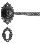 Klamka Odilo 17 z dolną rozetą na wkładkę patentową wykonana jest z kutego żelaza i dostępna w trzynastu powłokach kolorystycznych. Dzięki temu okucie znajduje zastosowanie zarówno do drzwi wewnętrznych, jak i zewnętrznych narażonych na wpływy atmosferyczne. Klamka oryginalnie włoska wyprodukowana przez firmę Galbusera G.&G.