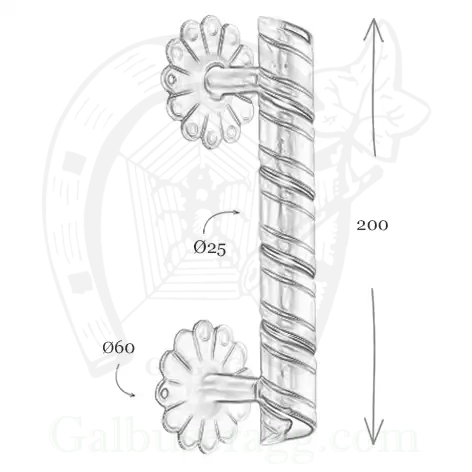 Uchwyt do drzwi Absalon 1090 o długości 200 mm wykonany jest z ręcznie kutego żelaza i dostępny w kilkunastu powłokach kolorystycznych. Pozwala to dobrać kolor uchwytu do charakteru wnętrza lub do kolorystyki drzwi.